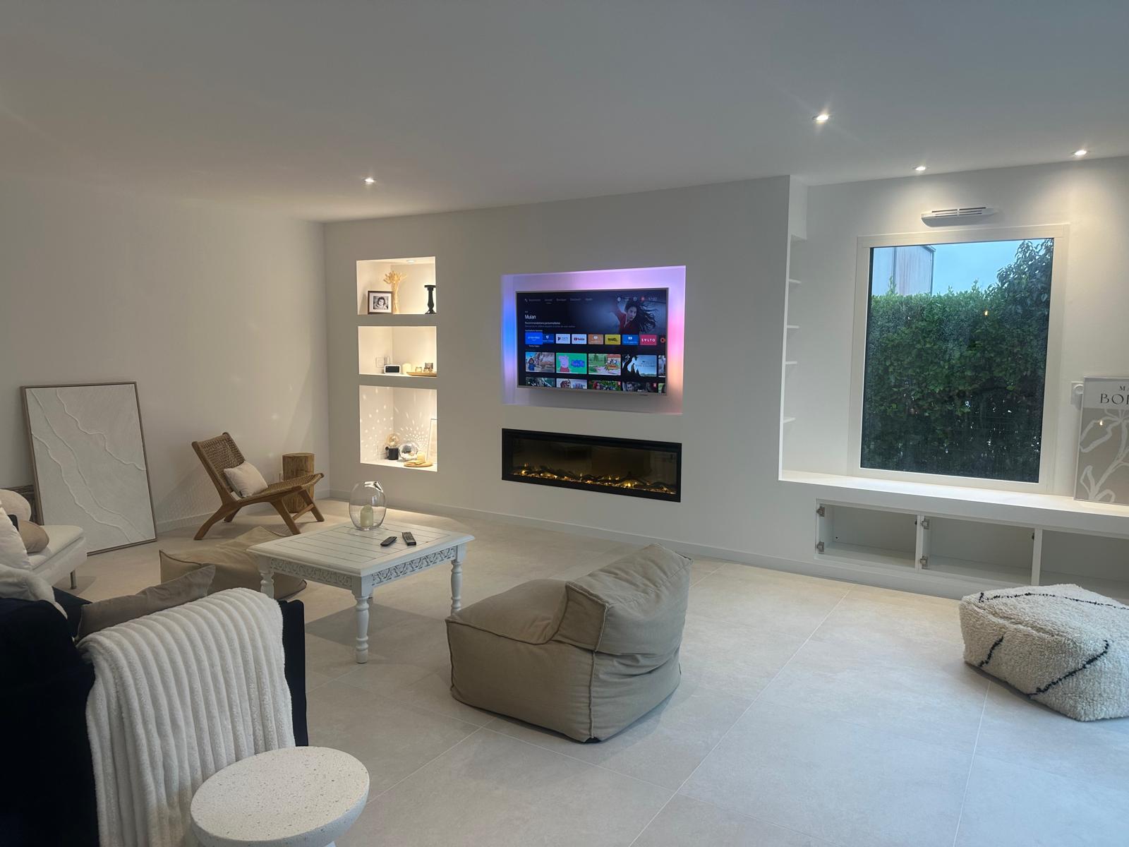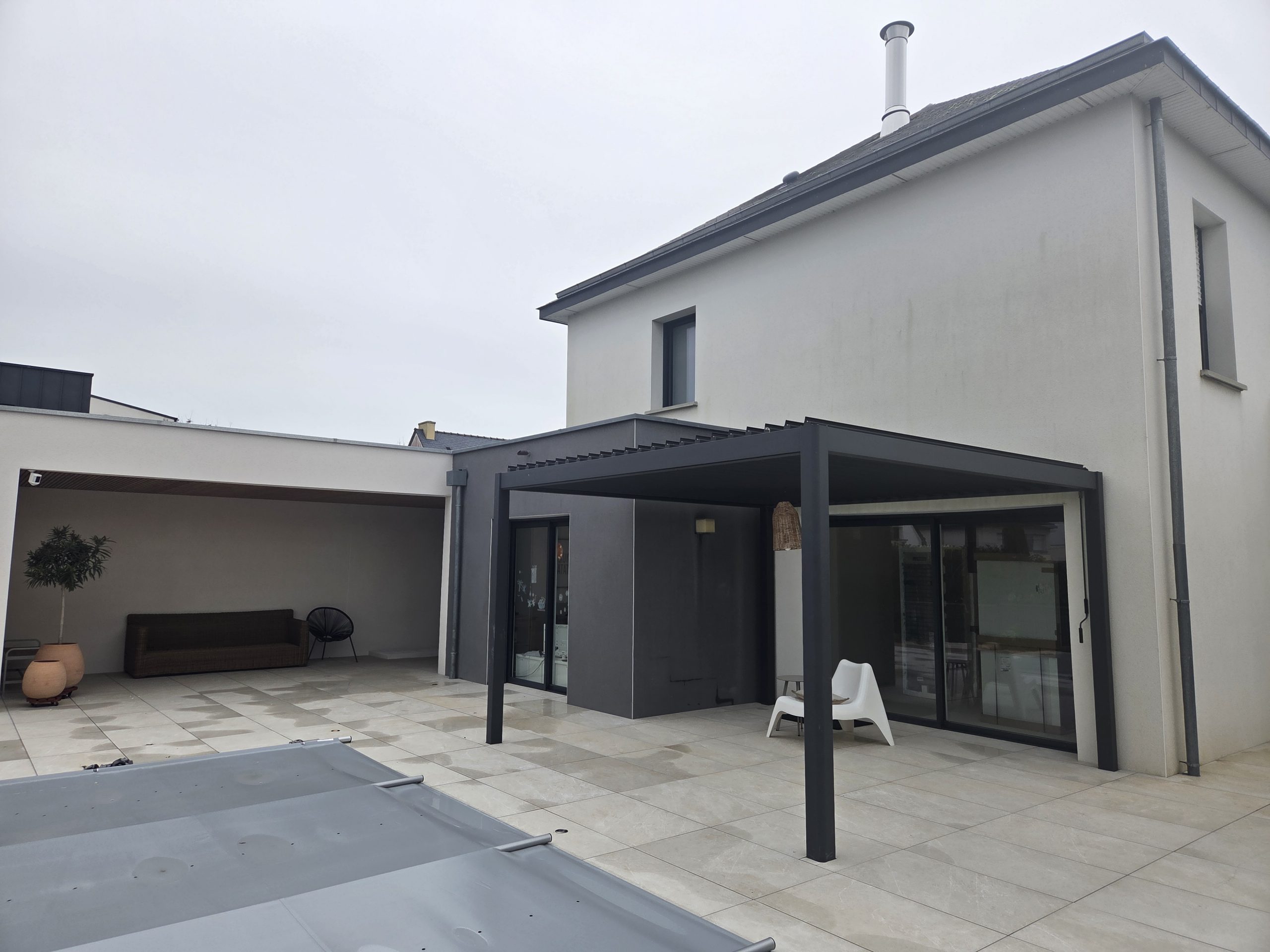 À Domloup, les clients ont souhaité repenser leur maison pour gagner en confort et profiter davantage de leur extérieur. Le salon a été réaménagé et agrandi pour offrir une pièce de vie plus lumineuse et ouverte. À l’extérieur, une cuisine d’été et une piscine viennent compléter le projet, pour créer un véritable espace de vie autour du jardin.