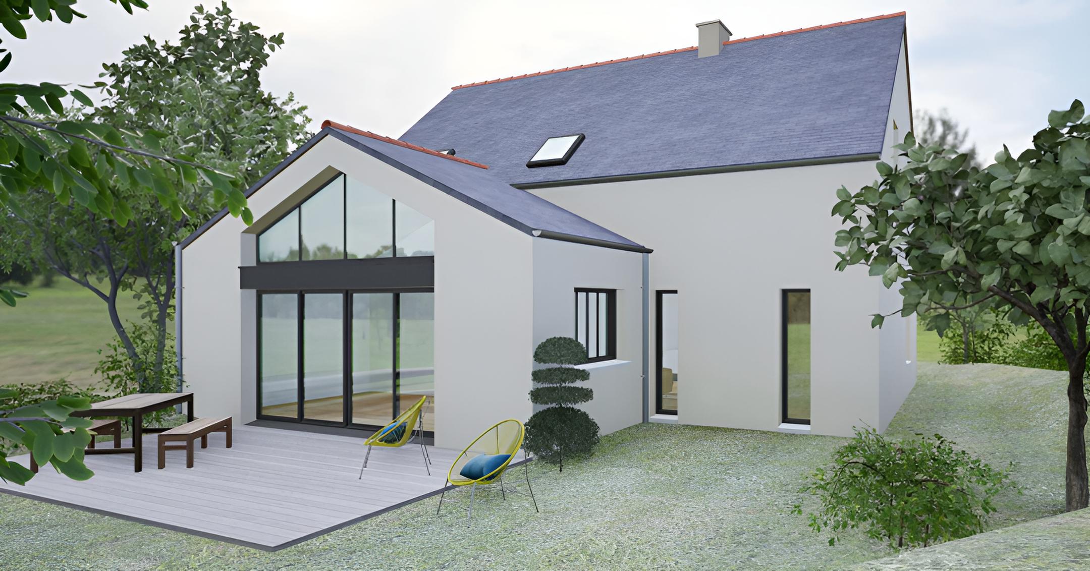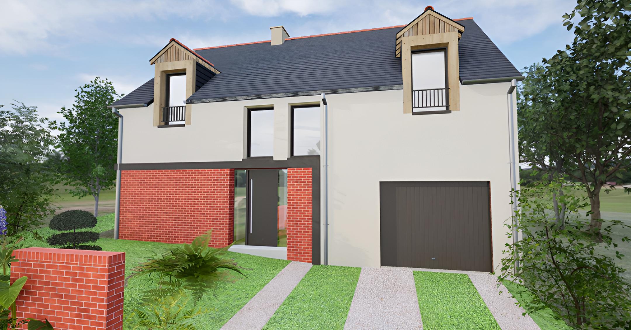 Située dans un lotissement à Châteaugiron, cette maison de 99 m² habitables s’intègre dans un environnement soumis aux règles des Bâtiments de France. Le projet a donc été pensé afin de respecter l’architecture locale tout en proposant une maison confortable et fonctionnelle pour nos clients. Un garage s’ajoute et apporte un espace de stationnement et de rangement.
