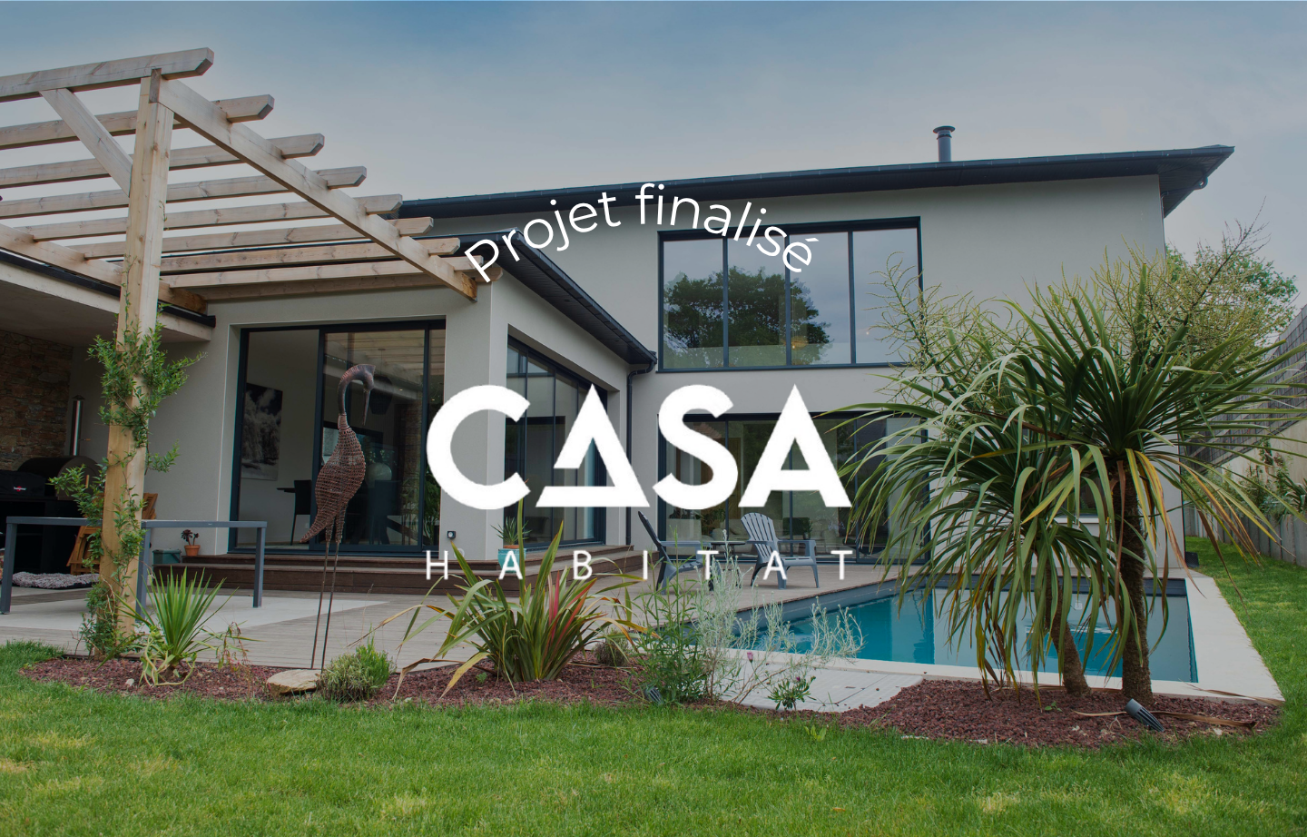 Pour ce projet, nos clients souhaitaient une maison très contemporaine aux lignes épurées. De plus, de larges baies vitrées baignent la pièce de vie de lumière et s’ouvrent sur un jardin avec piscine.